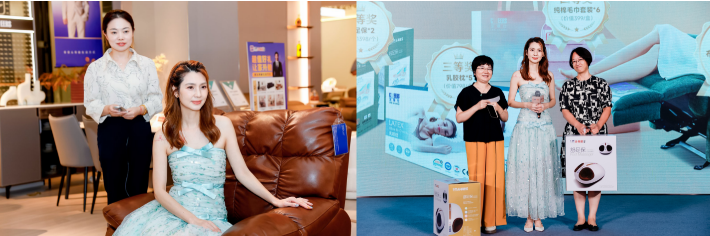 本次发布会现场还邀请到了神秘嘉宾,中国香港影视女演员--洪欣,伴随着洪欣老师的惊喜亮相,发布会的氛围也达到了顶峰。她也为大家带来了精彩的歌曲表演,并与现场粉丝进行热情的互动。在表演环节结束之后,洪欣老师也亲自体验了芝华仕头等舱功能沙发,并且分享了自己的“洪生活哲学”,他表示”现如今躺又躺不平卷又卷不动可以说是很多人的常态,但是芝华仕头等舱沙发是可以放心够买,安心购买的超值的好沙发。“