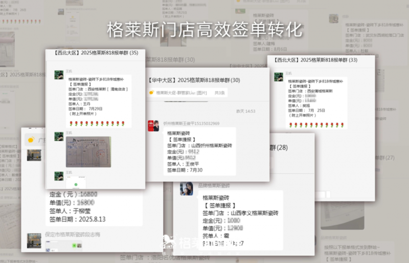 品牌总部以身作则,总经理黎汝让“黎叔讲瓷砖”账号开通,以90条视频近百万曝光吸引终端经销商老板以及导购纷纷效仿建立新媒体矩阵,超100家格莱斯终端门店入驻抖音本地生活。今年“818品牌日”期间,格莱斯全新“下沉市场+新媒体赋能”模式实战落地,实现了单个门店留资加微信率62%的标杆记录。