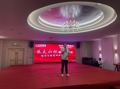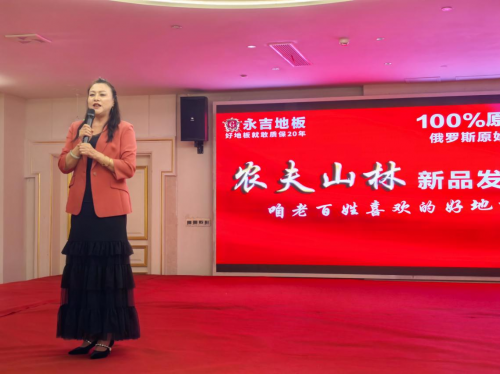 活动伊始,嘉善永吉地板营销中心董事长徐政女士表欢迎致辞。徐总回顾了与永吉地板如何结缘,至今做永吉已29年,一直跟随总公司步伐,响应公司号召,在当地一直把永吉地板做了数一数二的品牌,今天我们带着总公司研发的 “农夫山林” 母婴级的新品回到这里,它不仅延续了永吉 29 年的品质环保基因,更针对咱们嘉善潮湿的气候、常见的地暖需求做了专属优化。我相信,这款满含诚意的产品,会继续帮我们把 “永吉” 这个名字,在嘉善的土地上扎得更深、走得更远。也再次感谢大家,一直以来对我们的支持与厚爱!
