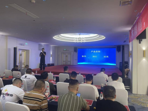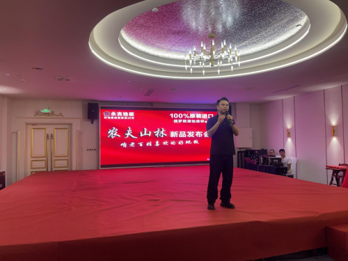 紧接着,营销总监赵东明先生登台,详细介绍了新系列地板的设计理念、技术亮点与环保性能。赵总监指出,新品不仅在材质与工艺上实现突破,更在耐磨、防潮、环保等方面达到行业领先水平,充分满足现代家庭对健康家居的高标准需求。他指出,新品延续了永吉“木精髓”系列 “零油漆、零甲醛、零异味”的核心优势,更在原材料甄选与工艺升级上实现重大突破。